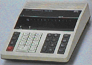 リコー(RICOMAC 121-SR) (c)東京理科大学 昭和48年9月にリコー(株)が84,000円で販売。LSI(R-LSI)構成の12桁 1メモリー電卓。4則演算、定数乗除算、ベキ乗算、パーセント乗除算、開平 計算、混合計算が可能。充電後、3時間の連続使用が可能。