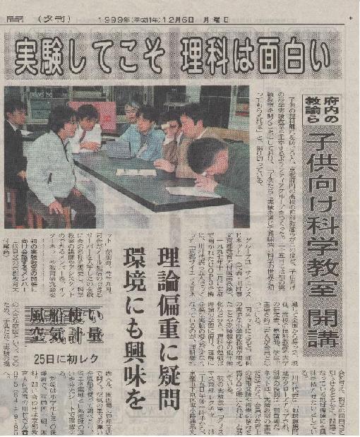 8月22日(日) 読売新聞 「かんでんおもしろ科学実験教室サイエンスキッズ'99」の紹介