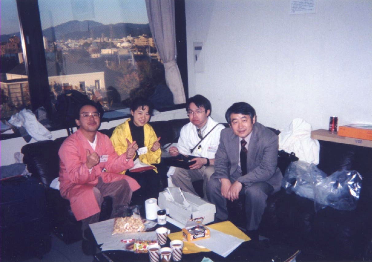 1997年 京都議定書の年 サイエンスEネットは誕生しました。 そのきっかけを,ガリレオ工房の滝川さん,onsenの山田さんに頂きました。 97’ガリレオ工房のサイエンス・ライブ・ショーでの控え室 私,大西(旧姓市川)さん,関君,滝川先生