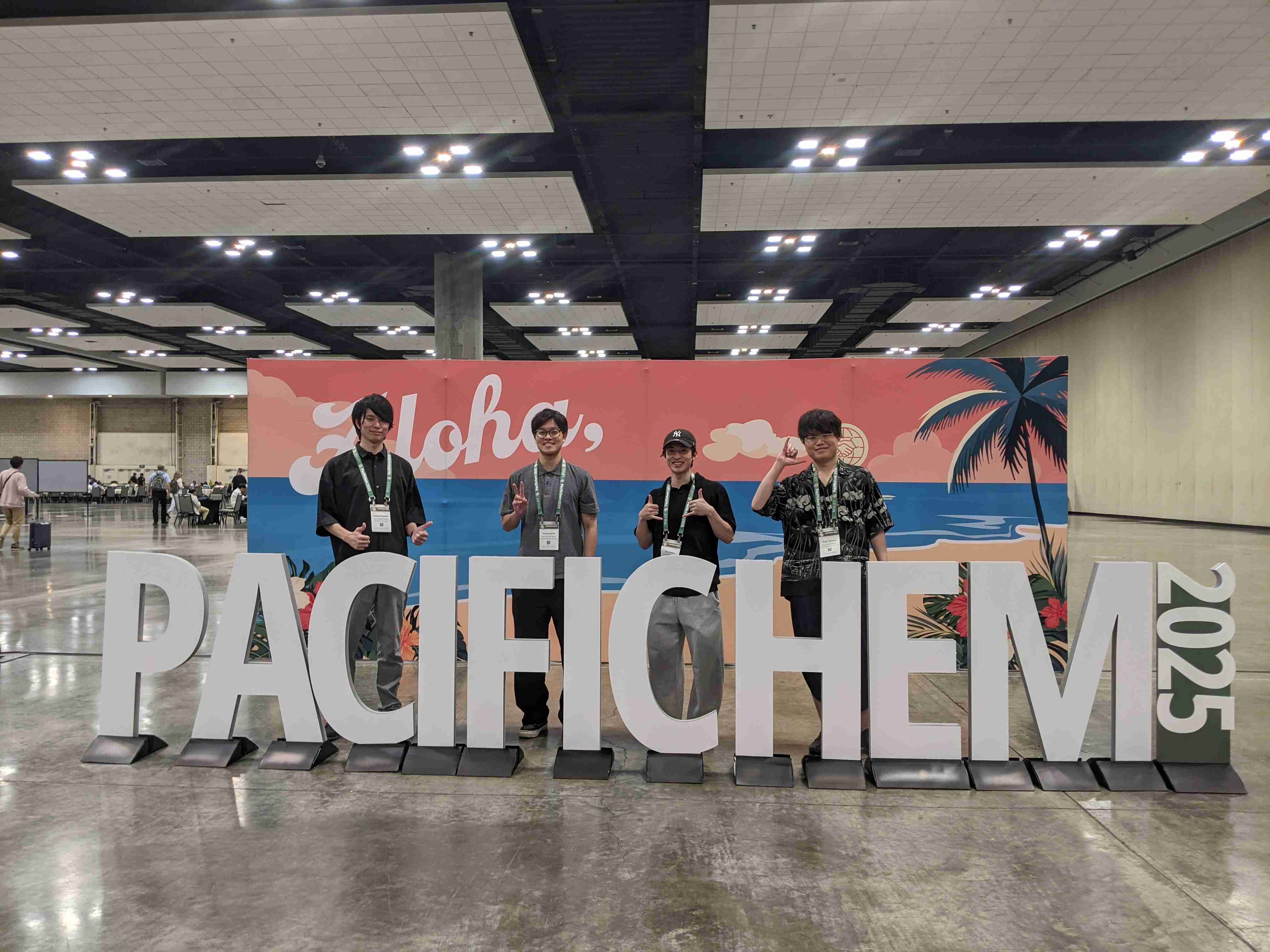 - Pacifichem2025(ハワイ・ホノルル)にて、小林講師、D1並木君、D1滝本君、M1浅野君が研究成果を発表しました!【集合写真】