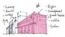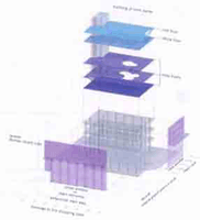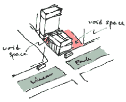 This is an architectual project in which we proposed a design with transparency and light. The line of columns and the fasade consist of glass, which symbolizes the very latest contemporary space. we have conceptually combined the Western architectural form and the eastern architectural expression by making use of authentic materials. this new building, when it is completed in the center of the city, would change the surrounding environment dramatically. |