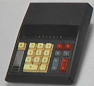 OMRON(800K) (c)東京理科大学 昭和47年にオムロン(株)が29,800円で販売。昭和46年、業界で初めて 主要電子部品をMOS LSI化により小型化した製品。4則演算、連乗連除算、 混合計算が可能。8桁表示、定数機能付。
